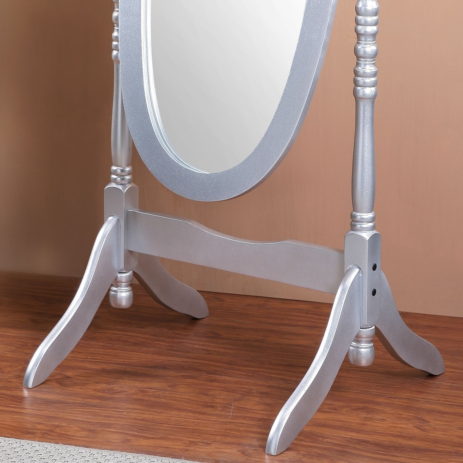 Traditional Queen Anna Style Wood Floor Cheval Mirror, Silver FinishFresh your bedroom with a bit of romance, this mirror is an antique reproduction of cheval mirrors found in homes before the turn of the century and will be a lovely addition to your home.
