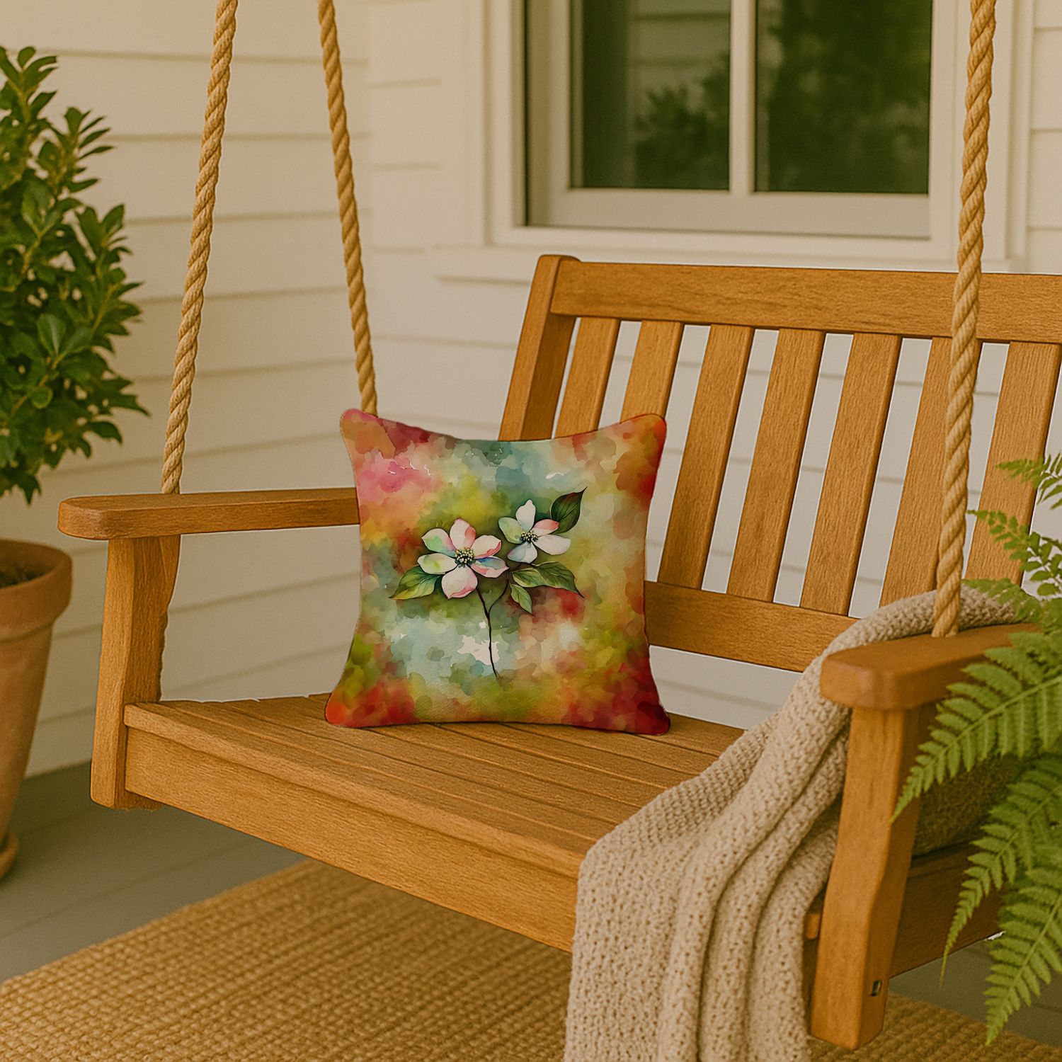 Virginia American Dogwood in Watercolor Throw Pillow Machine Washable, Indoor Outdoor Decorative Pillow for Couch, Bed or Patio, 14Hx14W
