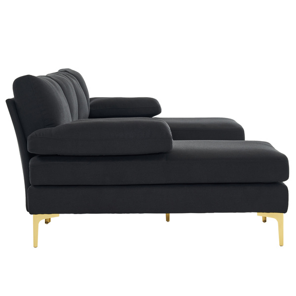 280*130*85 U-Shaped 4-Seat Linen Seat Frame Wooden Frame Back Iron Frame Golden Feet Indoor Modular Sofa Black