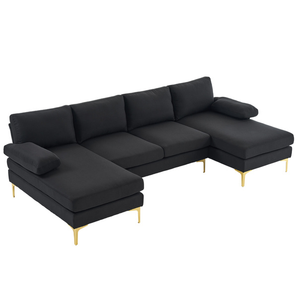 Home > 280*130*85 U-Shaped 4-Seat Linen Seat Frame Wooden Frame Back Iron Frame Golden Feet Indoor Modular Sofa Black