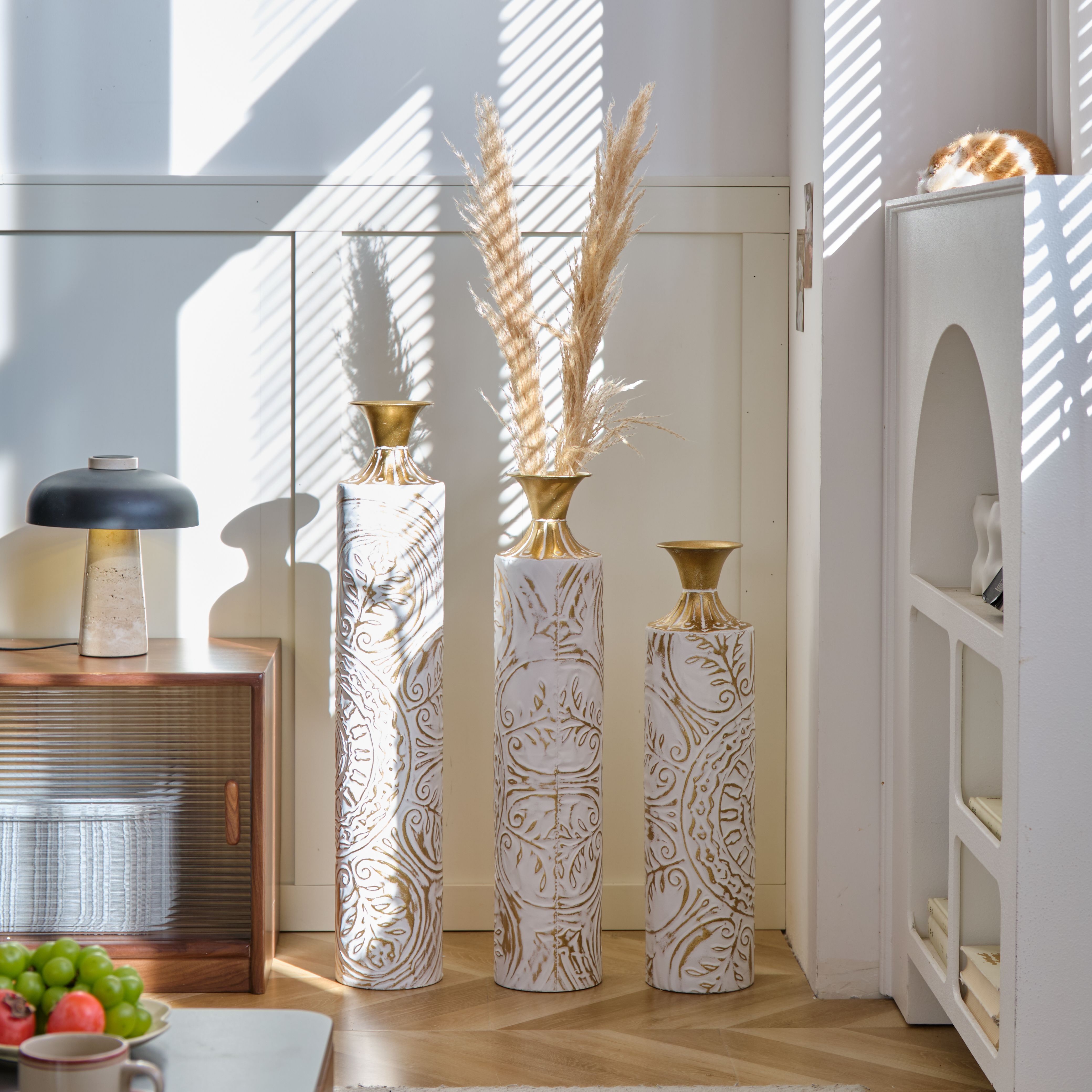 Floor Metal Vases Decorated White Metal vases Set of 3 gorgeous home decoration large glazed metal vases 24in/28.7in/33.5in height Floor Metal Vases Decorated White Metal vases Set of 3 gorgeous home decoration large glazed metal vases 24in/28.7in/33.5in height Floor Metal Vases Decorated White Metal vases Set of 3 gorgeous home decoration large glazed metal vases 24in/28.7in/33.5in height