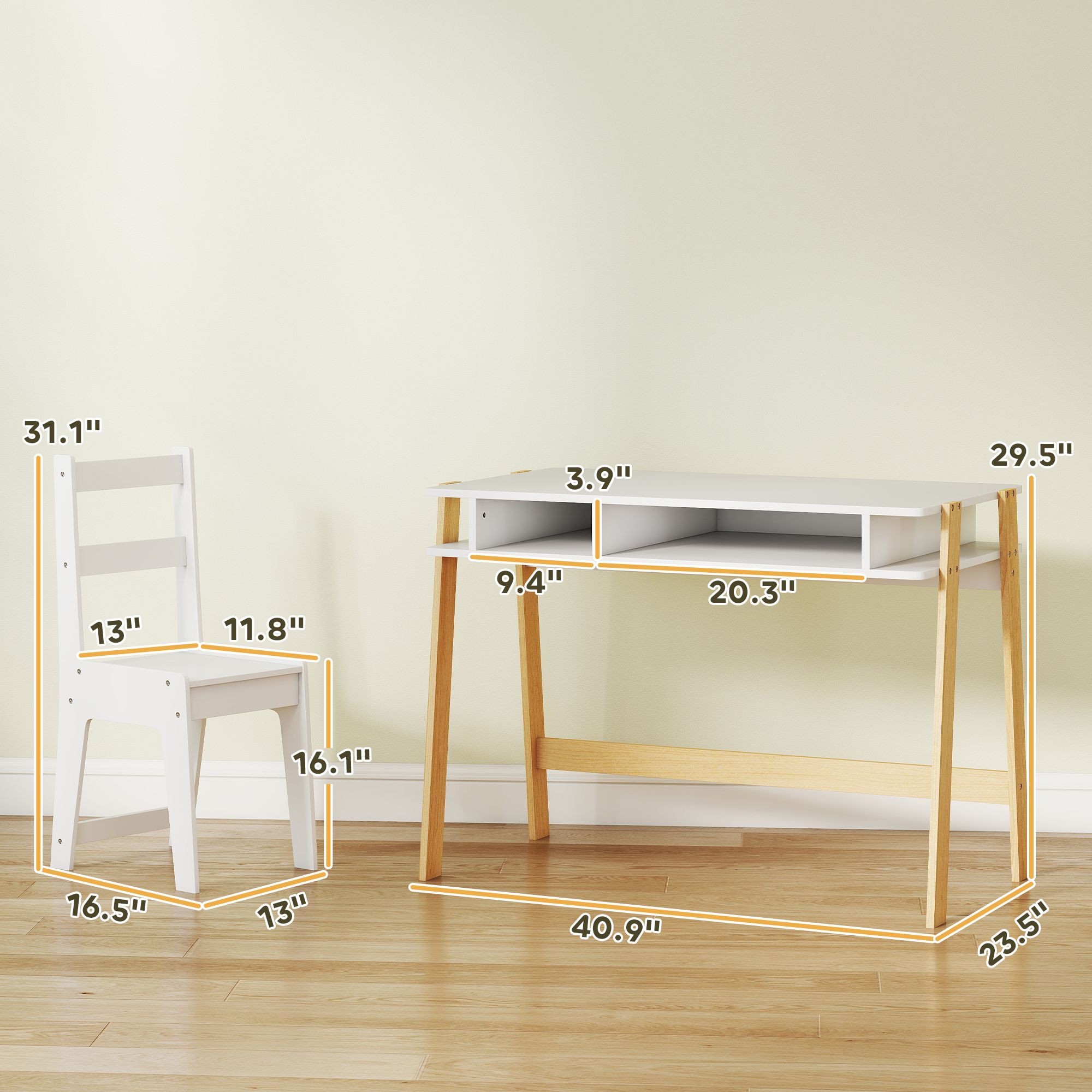 Let your child discover their academic potential with the Qaba kids study table and chair set! This children's study desk and chair set features a sleek white finish and four under-desk compartments for storage. Blending seamlessly into any decor while keeping creativity tools organized, it turns any space into a fun productivity and activity zone. Ergonomically designed to foster proper posture for kids aged 3-12, making it great for everyday use.