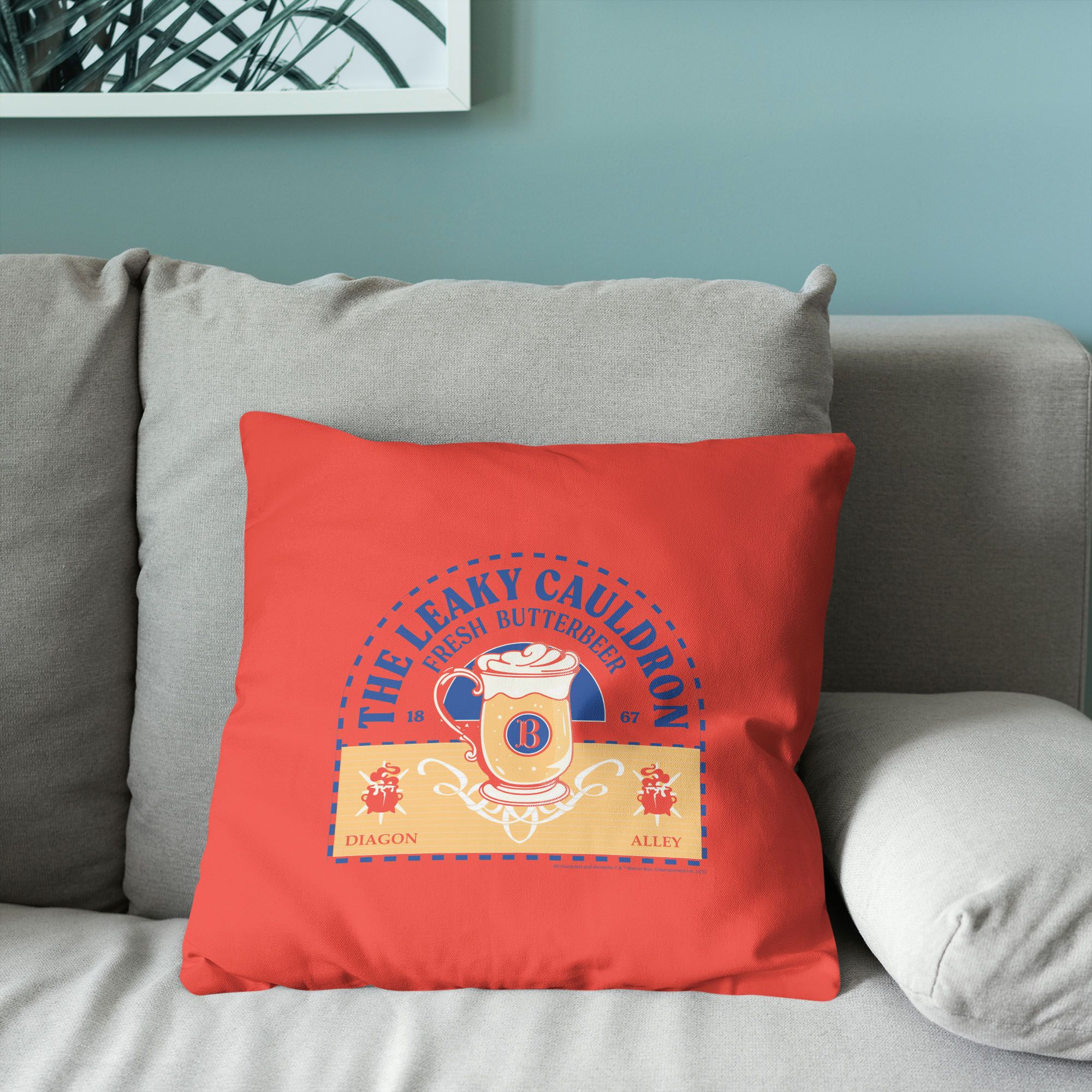 Celebrate your love for the Wizarding World with the Warner Bros. Harry Potter "Fresh Butterbeer" Throw Pillow. Featuring a vintage-inspired logo of The Leaky Cauldron bar and inn, this design pays homage to one of the most iconic spots in Diagon Alley. Perfect for fans of Butterbeer and magical adventures, it's a charming way to bring a touch of Hogwarts magic into your home. With its bold design and rich detailing, this throw pillow serves as both a stylish décor piece and a nod to Harry Potter's world. The logo, set against a complementary backdrop, exudes a rustic charm that pairs beautifully with modern or themed interiors. Whether it's displayed in your living room, study, or cozy reading nook, it's a wonderful way to add character and magic to any space. Crafted with care and premium materials, the "Fresh Butterbeer" Throw Pillow combines comfort and durability. Its plush filling offers a cozy touch, making it ideal for lounging while enjoying your favorite Harry Potter book or movie. Celebrate the warmth and nostalgia of the Wizarding World with this unique and inviting accent piece.