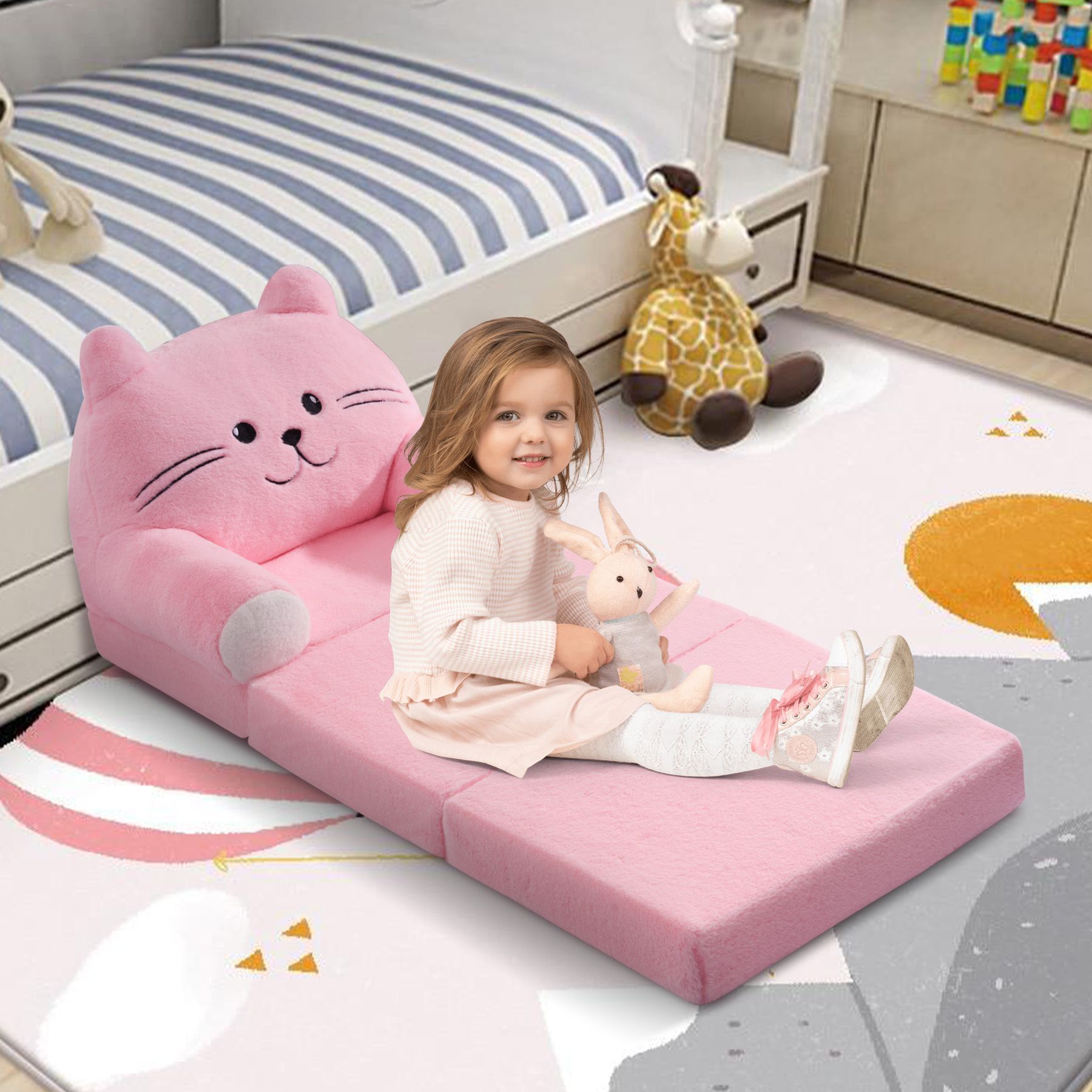 [2-in-1]The 2-in-1 folding sofa easily converts into a sofa or bed. Its light weight allows kids to move it to any room at will, whether it's for reading, playing video games, watching TV, or just relaxing and resting. Kids sofa bed is a sweet choice for kids to accompany them through their wonderful childhood.