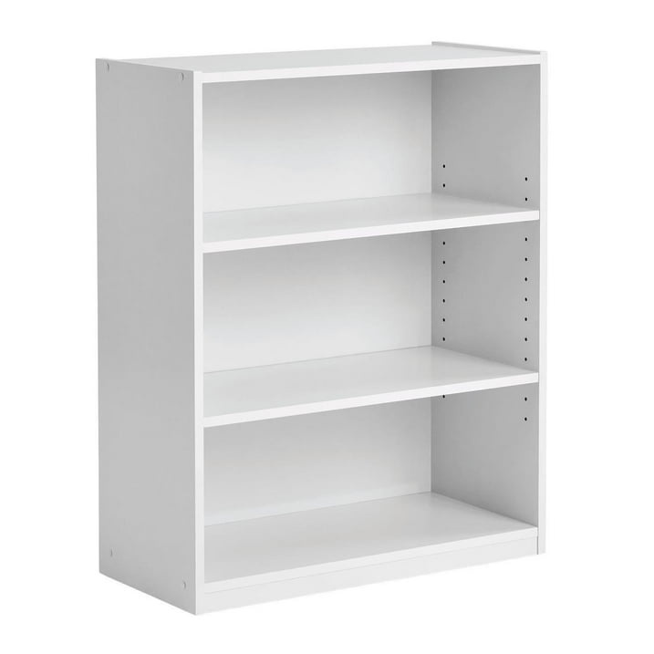 Add the sleek  3-Shelf Bookcase with Adjustable Shelves to any room for a functional and stylish look. This sturdy storage unit has a closed back design with one fixed shelf that holds up to 50 lbs, and two adjustable shelves that support up to 35 lbs each. Quick and easy to assemble, this attractive bookshelf is a useful storage option for any office, living room, family room, den and more. At 31" tall the  3-Shelf Bookcase is perfect for small and medium rooms where smart, efficient storage is needed. The adjustable shelves accommodate everything from paperbacks to large folios, perfect for small libraries and collections.