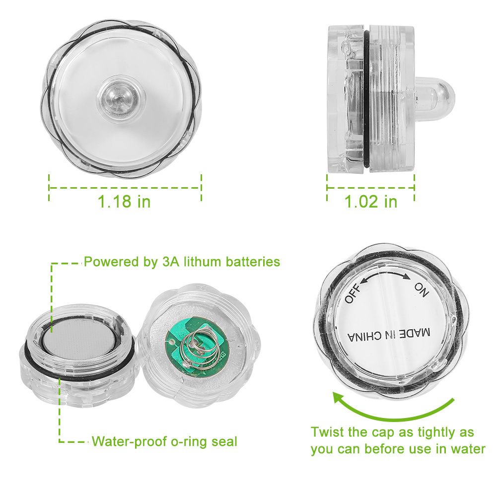 ** SUBMERSIBLE & FLAMELESS*:The water-proof light Tea lights battery operated are flameless; smokeless and long lasting; safe to use and can be put into the vase; water or swimming pool.